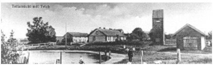 Приблизительно в центре деревни находился большой деревенский пруд. Не могу припомнить, катался ли я там на «крендельных санках». По устному преданию, в первые годы после заселения деревни оба пруда были настолько велики, что образовывали единый водоем. Позднее его средняя часть, благодаря заносам песком и продуктами верхнего слоя почвы, превратилась в плодородную пашню, где смогли обосноваться ее владельцы, предшественники крестьянина Эггерта (Eggert) и колесного мастера Поллейта (Polleit).